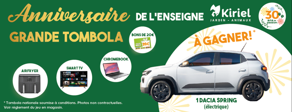 Cette année, notre enseigne a l’honneur de célébrer son 30ᵉ anniversaire. À cette occasion, nous organisons une grande tombola nationale avec de nombreux cadeaux à gagner. Vous pourrez également découvrir vos magasins décorés spécialement pour l’événement.